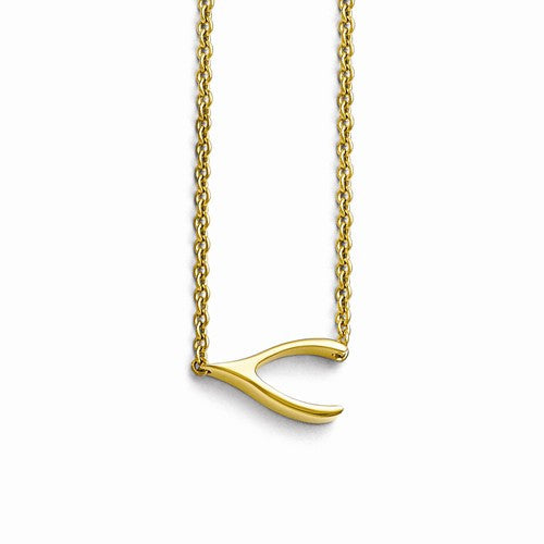 Stainless Steel Polished Yellow Ip-Plated Sideways Wishbone Necklace