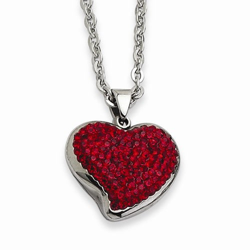 Stainless Steel Red Crystal Heart Pendant On Necklace