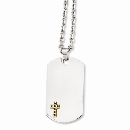 Stainless Steel Sapphires Cross Dog Tag Necklace