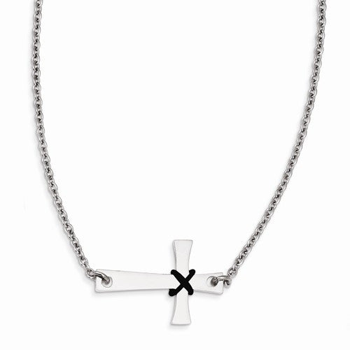 Stainless Steel Sideways Cross Rubber Accent Necklace