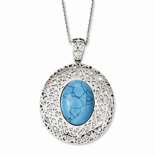 Stainless Steel Simulated Turquoise Pendant Necklace