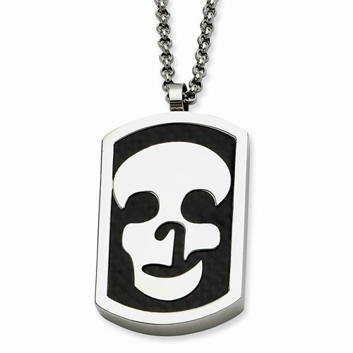 Stainless Steel Skull & Fancy Back Reversable Dog Tag Necklace