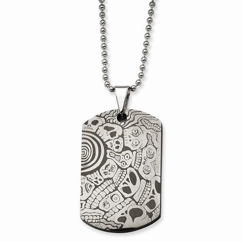 Stainless Steel Skulls Dog Tag Pendant On Necklace