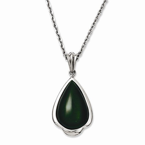 Stainless Steel Synthetic Green Cats Eye Teardrop Necklace