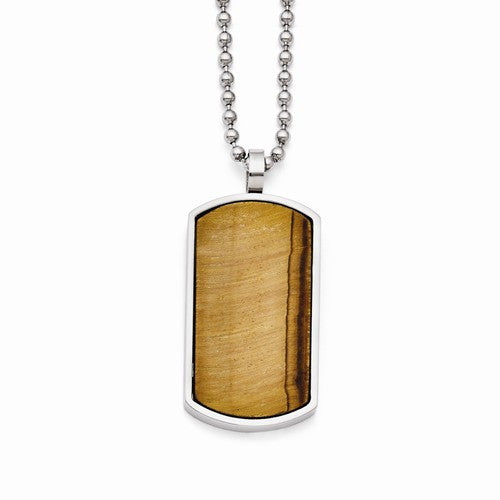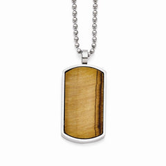 Stainless Steel Tiger'S Eye Dog Tag Pendant On Necklace