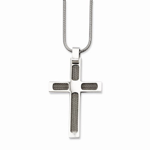 Stainless Steel Wire & Polished Cross Pendant On Necklace