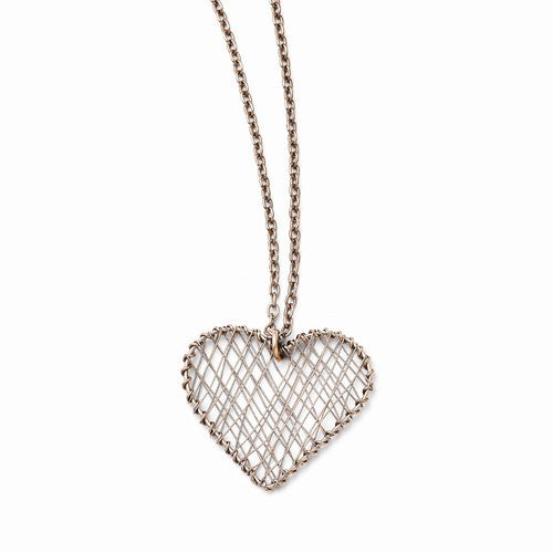 Stainless Steel Wired Pink Ip-Plated Heart Polished Necklace