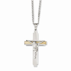 Stainless Steel Yellow Ip-Plated & Polished Crucifix Necklace