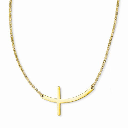 Stainless Steel Yellow Ip-Plated Sideways Cross Necklace