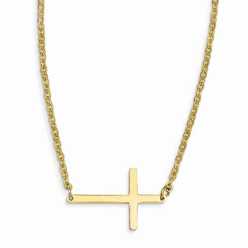 Stainless Steel Yellow Ip-Plated Sideways Cross Necklace