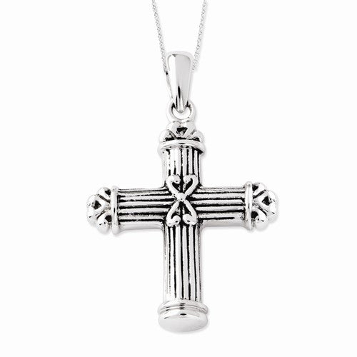 Sterling Silver Antiqued Cross Ash Holder Necklace