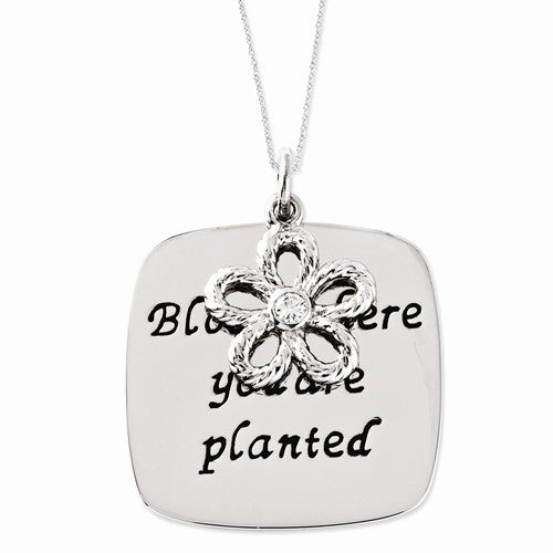Sterling Silver Antiqued CZ Bloom Where You Are Planted Flower Necklac Necklace