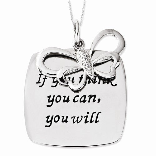 Sterling Silver Antiqued CZ If You Think You Can Butterfly Necklace