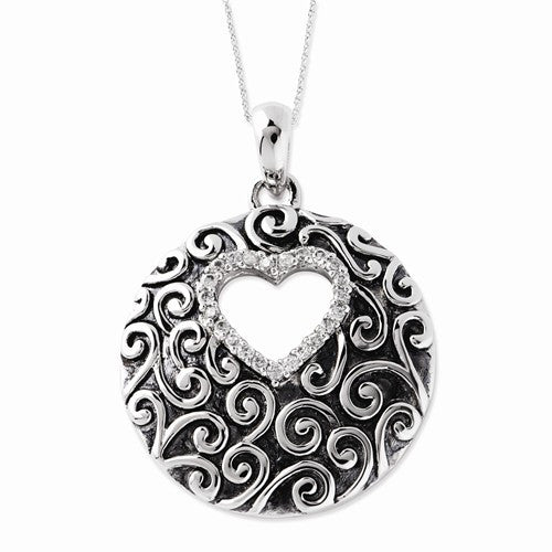 Sterling Silver Antiqued CZ The Heart Of A Family Heart Necklace