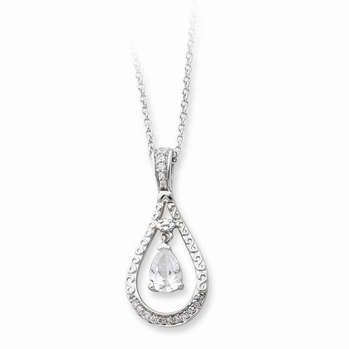 Sterling Silver April CZ Stone Never Forget Tear Birthstone Necklace