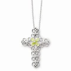 Sterling Silver Aug CZ Birthstone Message Of The CrossNecklace