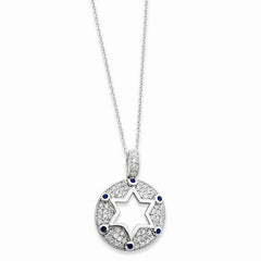 Sterling Silver Blue & Clear CZ Star Of David Necklace
