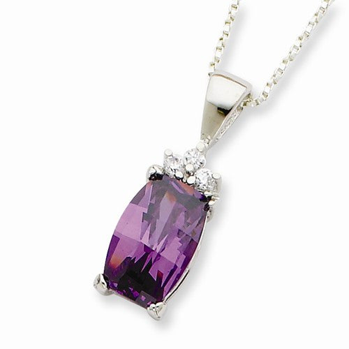 Sterling Silver Cushion Cut Checkerboard Purple and Clear CZ Necklace