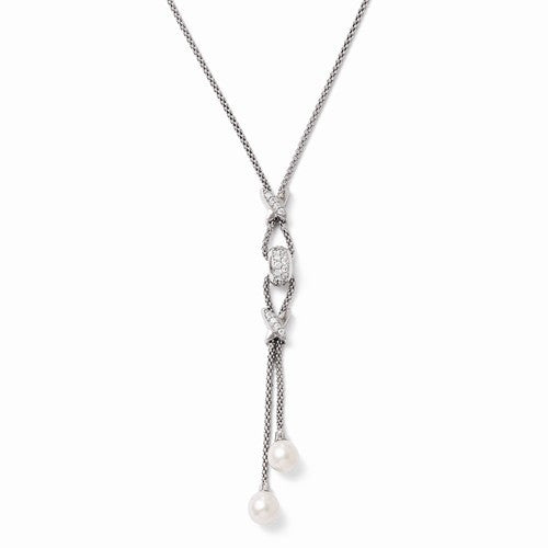 Sterling Silver CZ and Freshwater Cultured Pearl Necklace