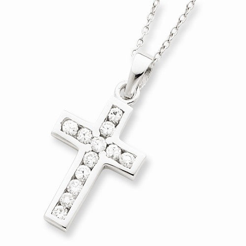 Sterling Silver CZ Cross On Box Chain