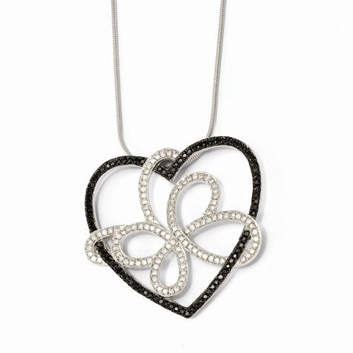 Sterling Silver & CZ Heart w/Butterfly Pendant Necklace