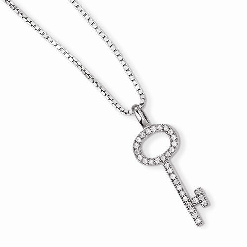 Sterling Silver & CZ Key Necklace
