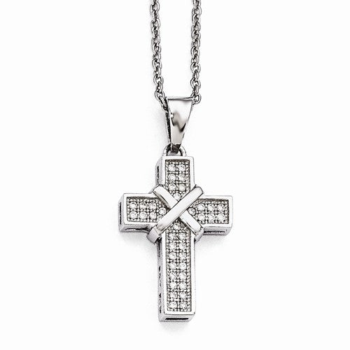 Sterling Silver & CZ Polished Cross Pendant Necklace