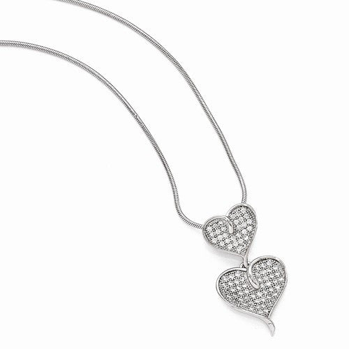 Sterling Silver & CZ Polished Double Heart Pendant Necklace