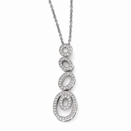 Sterling Silver & CZ Polished Fancy Oval Pendant Necklace