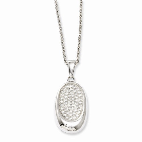Sterling Silver & CZ Polished Fancy Oval Pendant Necklace