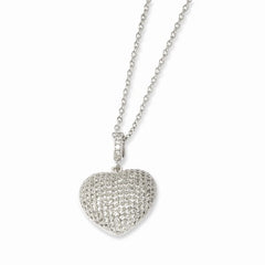 Sterling Silver & CZ Polished Heart Pendant Necklace