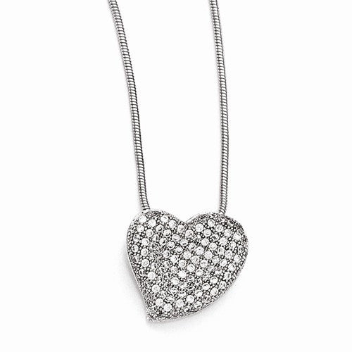 Sterling Silver & CZ Polished Heart Pendant Necklace