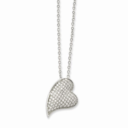 Sterling Silver & CZ Polished Heart Pendant Necklace