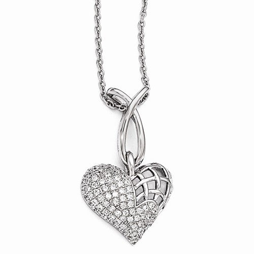 Sterling Silver & CZ Polished Heart Pendant Necklace