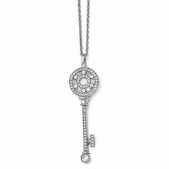 Sterling Silver & CZ Polished Key Pendant Necklace