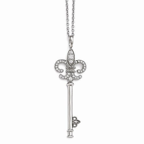 Sterling Silver & CZ Polished Key Pendant Necklace