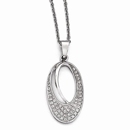 Sterling Silver & CZ Polished Oval Pendant Necklace