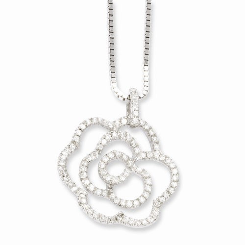 Sterling Silver & CZ Rose Pendant Necklace