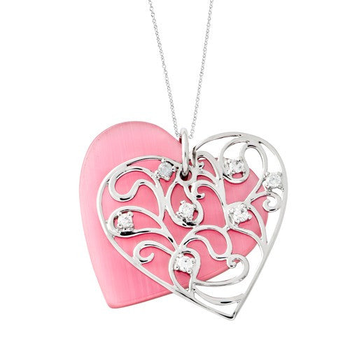 Sterling Silver CZ & Simulated Cat'S Eye Never Lose Heart Necklace