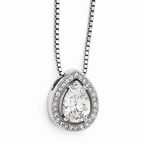Sterling Silver & CZ Teardrop Pendant Necklace