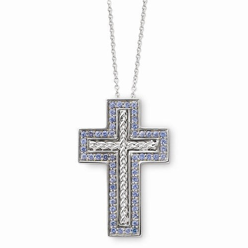 Sterling Silver Dec CZ Birthstone Message Of The CrossNecklace
