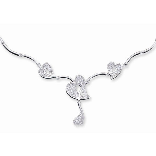 Sterling Silver Fancy CZ Heart Necklace
