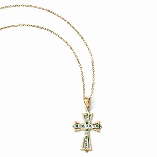 Sterling Silver & Gold-Plated Dia & Emerald Cross Necklace