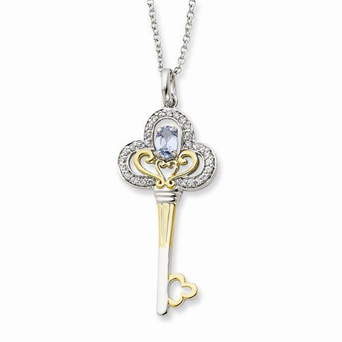 Sterling Silver & Gold-Plated Mar CZ Birthstone KeyNecklace