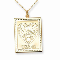Sterling Silver Gold-Plated Postage Stamp Wedding Hearts Necklace