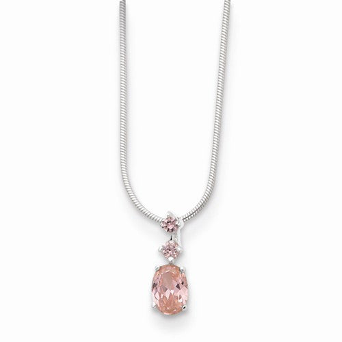 Sterling Silver Pink CZ Pendant On Necklace