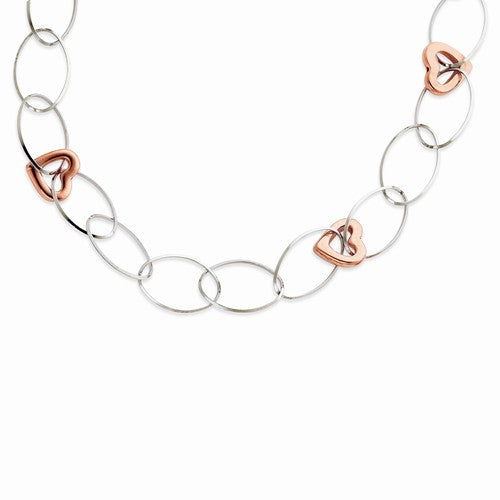 Sterling Silver & Rose Rhodium Hearts Necklace