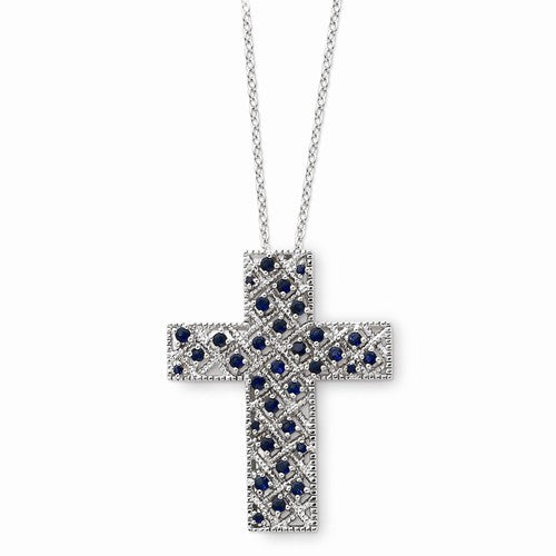 Sterling Silver Sept CZ Birthstone Message Of The CrossNecklace