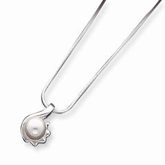 Sterling Silver Simulated Pearl Pendant On Snake Chain Pendant