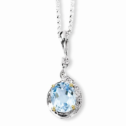 Sterling Silver & Sky Blue Topaz Diamond Necklace